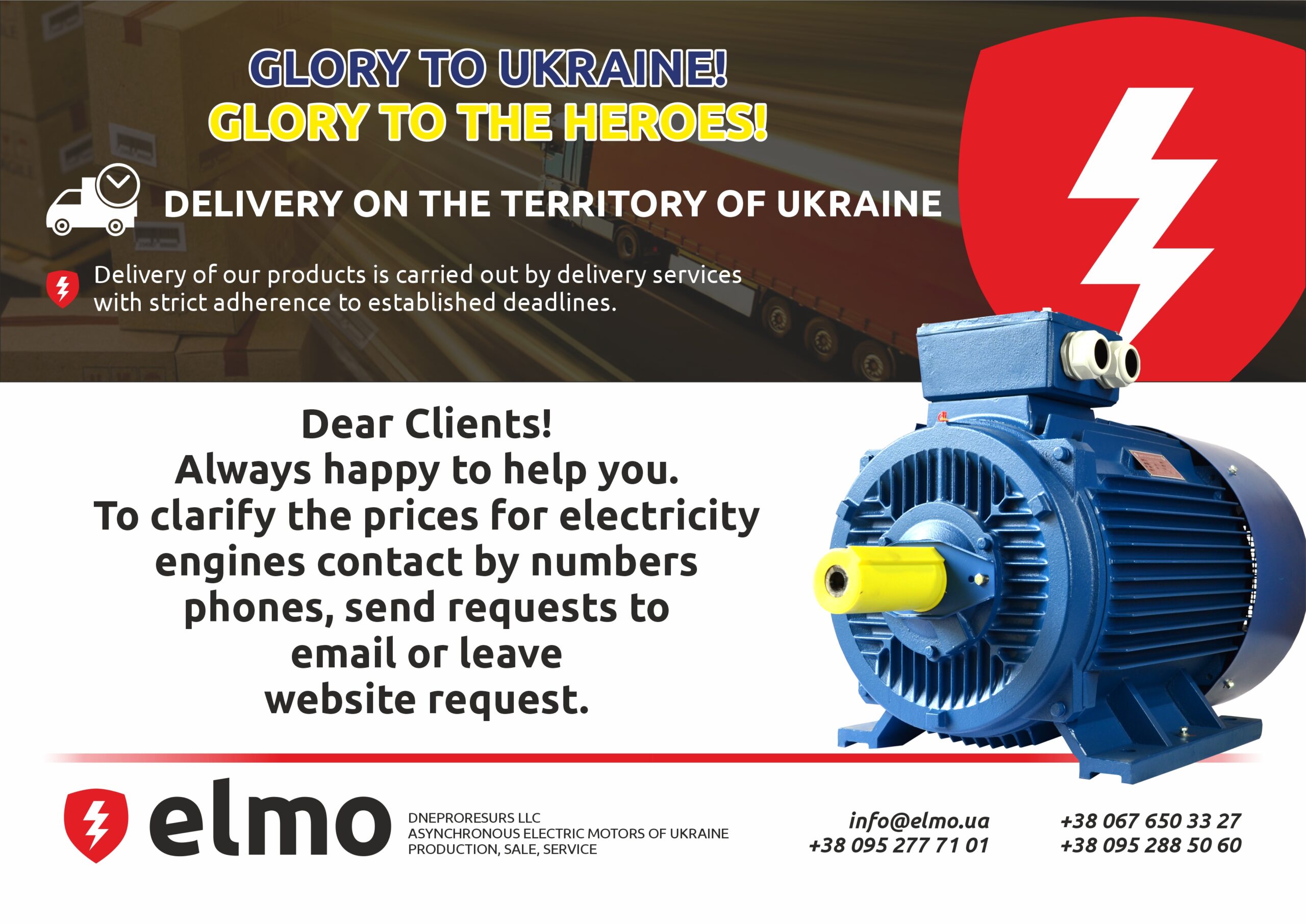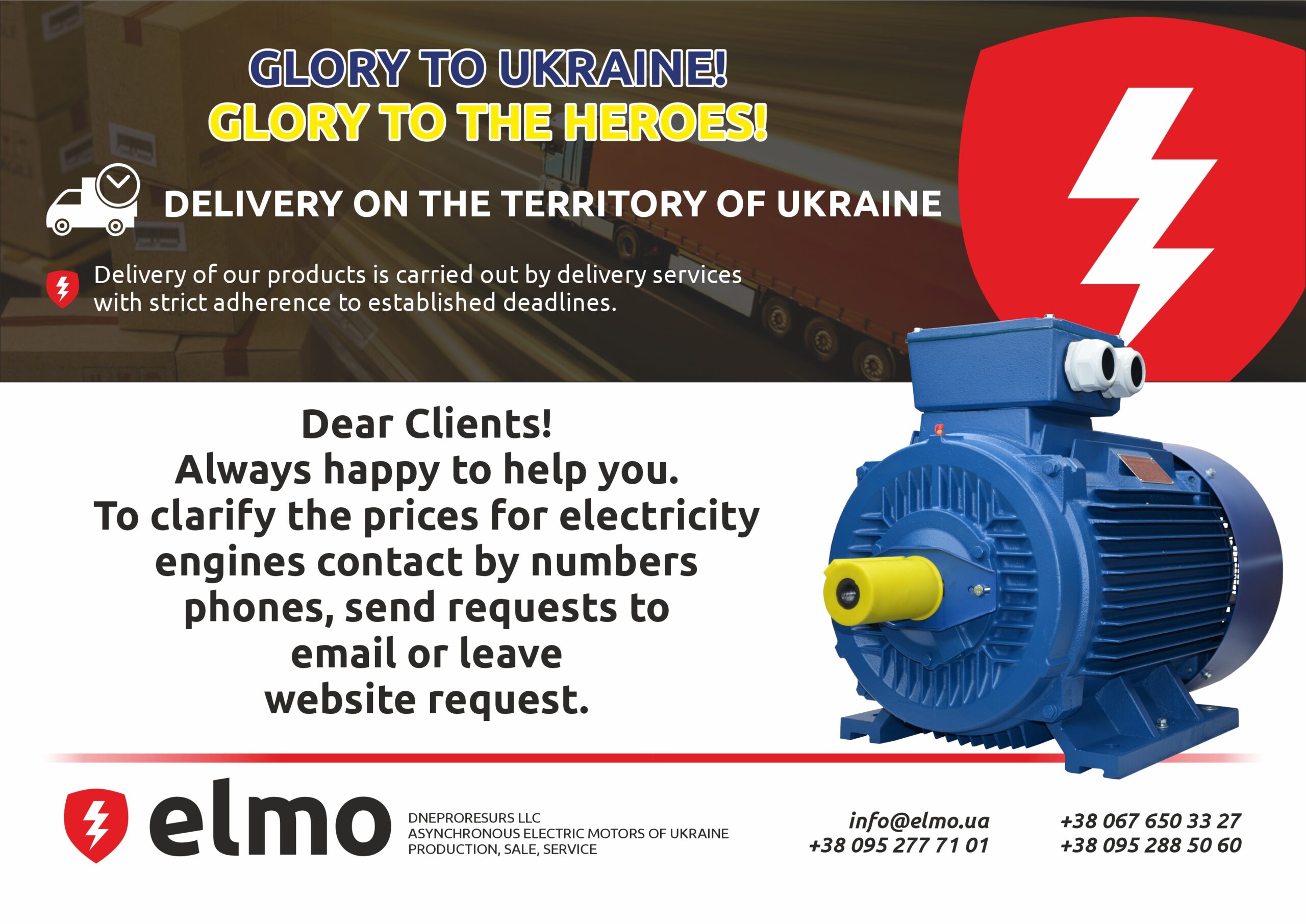You can send your request to our e-mail address info@elmo.ua or call us: